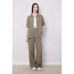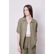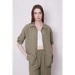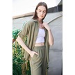 Kadın Keten Düşük Omuzlu Yakalı Kapri Kol Apoletli Gömlek -haki Haki