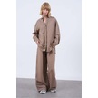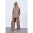 Kadın Keten Gömlek Pantolon Takım Vizon