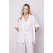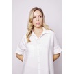 Kadın Keten Görünümlü Kolu Katlanabilir Rahat Kesim Uzun Tunik Gömlek-krem Krem