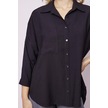 Kadın Keten Görünümlü Kolu Katlanabilir Rahat Kesim Uzun Tunik Gömlek-siyah Siyah