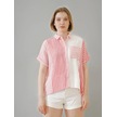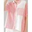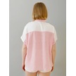 Kadın Keten Oversize Pembe Cizgili Beyaz Kısa Kollu Gömlek Pembe