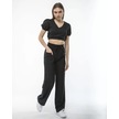 Kadin Keten Pantolon Ve Crop Takım - Siyah 001