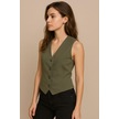 Kadın Keten Yelek Düğmeli, Astarsız, V Yaka Yazlık Şık Yelek Doğal Kumaş Rahat Kalıp Çok Renkli