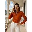 Kadın Kiremit Gizli Düğme Detaylı Slim Fit Trend Krep Gömlek Çok Renkli