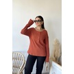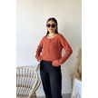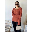 Kadın Kiremit Yumuşak Dokulu, Düğmeli Bisiklet Yaka, Regular Kesim Triko Kazak, Bluz Kiremit