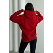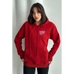 Kadın Kırmızı Charlie Luciano Baskılı Oversize Kapüşonlu Sweatshirt Kırmızı
