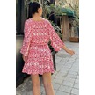 Kadın Kırmızı Etnik Desenli Viskon, Yarasa Kol, Kruvaze Mini Kimono - Kloş Kısa Elbise Kırmızı