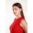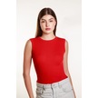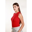 Kadın Kırmızı Fitilli Likralı Sıfır Kol Bisiklet Yaka Örme Atlet Tshirt Bluz Kırmızı