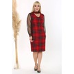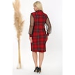 Kadın Kırmızı Siyah Ekose Desen Yaka Detay Tül Kol Büyük Beden Esnek Süet Elbise Kırmızı