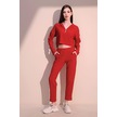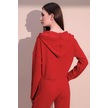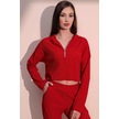 Kadın Kırmızı Uzun Kol Fermuarlı Kapüşonlu Kendinden Desenli Crop Sweatshirt Bluz Kırmızı