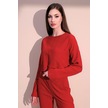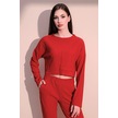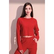 Kadın Kırmızı Uzun Kol Kendinden Dokulu Cepli Crop Sweatshirt, Salaş Kesim Bluz Kırmızı