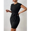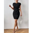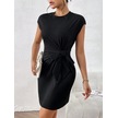 Kadın Kısa Kap Kollu Bisiklet Yaka Belden Bağlamalı Modal Mini Elbise Siyah