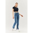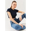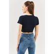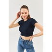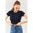 Kadın Kısa Kol Bisiklet Yaka Vücuda Oturan %100 Pamuklu Kaşkorse Esnek Crop Bluz Lacivert