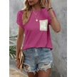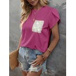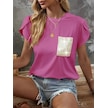 Kadın Kısa Kollu Bisiklet Yaka Cep Pul Payet Detay Viskon Bluz Pembe