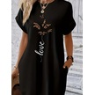 Kadın Kısa Kollu Bisiklet Yaka Cepli Kelebek Baskılı Viskon Elbise Çok renkli