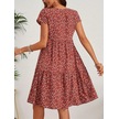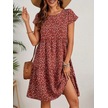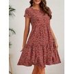 Kadın Kısa Kollu Bisiklet Yaka Çiçek Desenli Süprem Elbise Bordo