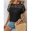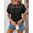 Kadın Kısa Kollu Bisiklet Yaka Dantel Detaylı Viskon Bluz Siyah
