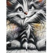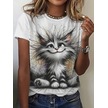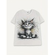 Kadın Kısa Kollu Bisiklet Yaka Kedi Baskılı Süprem Bluz Beyaz