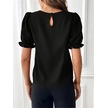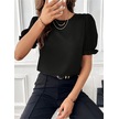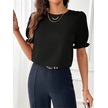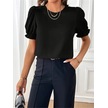 Kadın Kısa Kollu Bisiklet Yaka Kolları Gipeli Ithal Krep Bluz Siyah