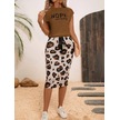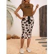 Kadın Kısa Kollu Bisiklet Yaka Viskon Bluz Desenli Dalgıç Etek Ikili Takım Kahve