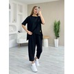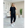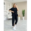 Kadın Kısa Kollu Bisiklet Yaka Viskon Iki Iplik Bluz Ve Pantolon Ikili Takım Siyah