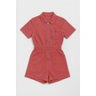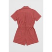 Kadın Kısa Kollu Fermuarlı Beli Lastikli Jean Tulum Şort Pembe