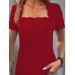 Kadın Kısa Kollu Kare Lazer Yakalı Janjan Krep Bluz Kırmızı