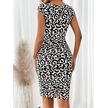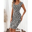 Kadın Kısa Kollu Kare Yakalı Leopar Desenli Dalgıç Elbise Siyah