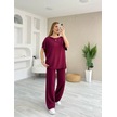 Kadın Kısa Kollu Kayık Yakalı Dikiş Izi Detaylı Viskon Iki Iplik Bluz Ve Pantolon Ikili Takım Çok Renkli