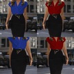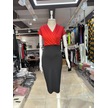 Kadın Kısa Kollu Kruvaze Yaka Krep Elbise Kemersiz Kırmızı