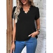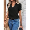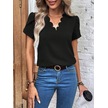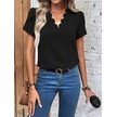 Kadın Kısa Kollu Lazer V Yakalı Ithal Krep Bluz Siyah