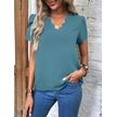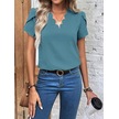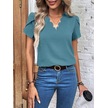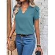 Kadın Kısa Kollu Lazer V Yakalı Ithal Krep Bluz Turkuaz