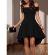 Kadın Kısa Kollu Madonna Yaka Önü Kısa Arkası Uzun Ithal Krep Elbise