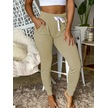 Kadın Kısa Kollu Madonna Yaka Viskon Crop Bluz Cepli Iki Iplik Eşofman Takım Bej