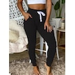 Kadın Kısa Kollu Madonna Yaka Viskon Crop Bluz Cepli Iki Iplik Eşofman Takım Siyah