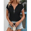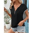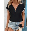 Kadın Kısa Kollu Önden Fermuarlı Kol Ucu Işıltılı Viskon Bluz Siyah