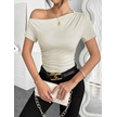 Kadın Kısa Kollu Tek Omuzu Açık Büzgülü Viskon Bluz Bej