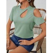 Kadın Kısa Kollu Tek Omuzu Açık Damla Detaylı Viskon Bluz Yeşil