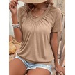 Kadın Kısa Kollu V Yakalı Büzgü Detaylı Viskon Bluz Bej