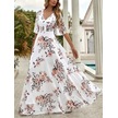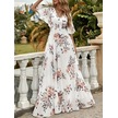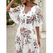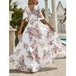Kadın Kısa Kollu V Yakalı Çiçek Desenli Süprem Elbise Beyaz