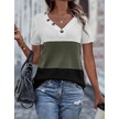 Kadın Kısa Kollu V Yakalı Düğmeli Waffle Bluz Beyaz
