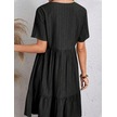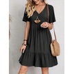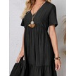 Kadın Kısa Kollu V Yakalı Fırfırlı Bürümcük Elbise Siyah