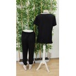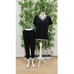 Kadın Kısa Kollu V Yakalı Iki Iplik Bluz Ve Pantolon Ikili Takım Siyah