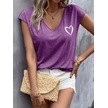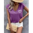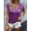 Kadın Kısa Kollu V Yakalı Kalp Baskılı Viskon Bluz Mor