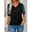 Kadın Kısa Kollu V Yakalı Pul Payet Detaylı Viskon Bluz Siyah