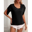 Sistas Kadın V Yaka Omuz Ve Sırt Tül Detaylı Kısa Kol Bluz 4148 Siyah Siyah