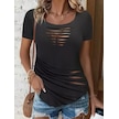 Kadın Kısa Kollu Yakası Açık Lazer Kesik Detaylı Viskon Bluz Siyah
