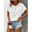 Kadın Kısa Kollu Yakası Açık Önden Düğmeli Waffle Bluz Beyaz
