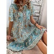 Kadın Kısa Kollu Yakası Bağcıklı Önden Düğmeli Fırfır Desenli Süprem Elbise Mavi