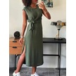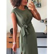 Kadın Kısa Kollu Yuvarlak Yaka Belden Bağcıklı Önden Yırtmaçlı Aerobin Elbise Çok renkli